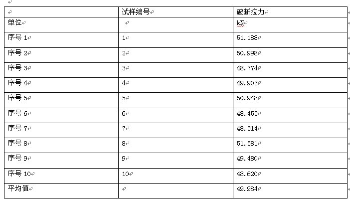 鋼絲帶破斷試驗機拉伸測試數據及曲線: